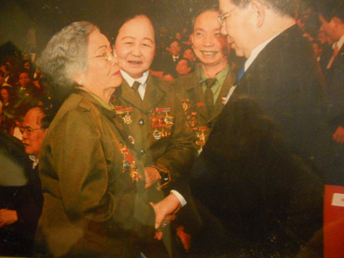 NSƯT Lê Thu (trái) trong lần gặp mặt Chủ tịch nước Nguyễn Minh Triết |