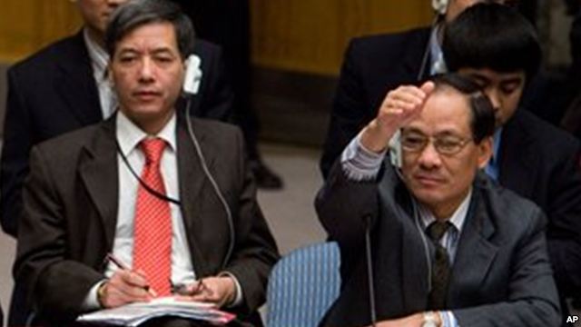| Ông Lê Lương Minh (phải) tại một phiên họp của Hội đồng Bảo an |