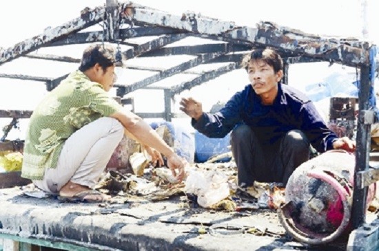 | Một góc cabin cháy của tàu QNg 96382 TS. Ảnh: Tiền Phong |