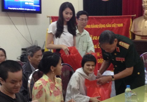Trao quà cho các nạn nhân chất độc da cam. Ảnh: Hà Thanh