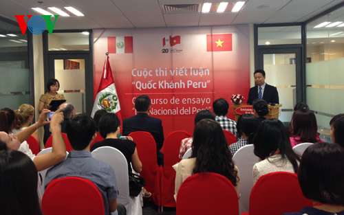 (VOV5) - Nhân dịp ngày Quốc Khánh của nước Cộng hoà Peru (28/7/2014) và kỷ niệm 20 năm thiết lập quan hệ ngoại giao giữa nước Cộng hòa Peru và nước Cộng hòa Xã hội Chủ nghĩa Việt Nam (1994-2014), Đại Sứ Quán Peru tại Việt Nam tổ chức “Cuộc thi viết về Peru”.