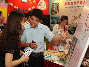 | Khách tham quan tìm hiểu về thuốc Việt Nam tại Triển lãm thuốc của các doanh nghiệp sản xuất thuốc trong nước. (Ảnh: Minh Quyết/TTXVN) |