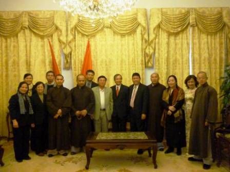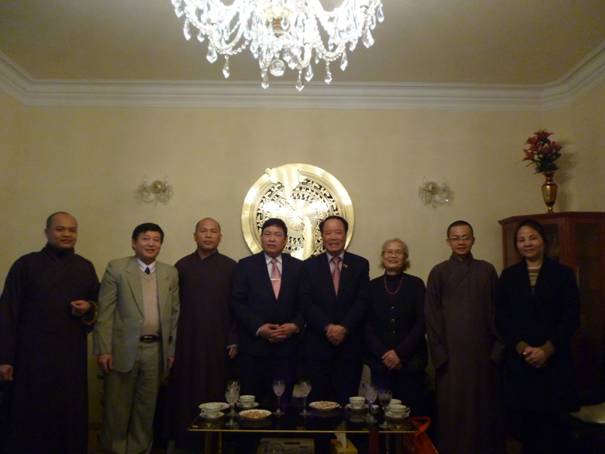 Trong chuyến hoằng pháp đầu xuân, đoàn cũng đã tới viếng thăm Đại sứ quán Việt Nam tại Cộng hòa Hungary. Tại đây, ông Ngô Duy Ngọ cùng hai vị Tham tán công sứ cộng đồng đã đón tiếp phái đoàn trong không khí ấm tình quê hương. Đại sứ Ngô Duy Ngọ đã chia sẻ những thông tin về Hungaria và tình hình bà con Việt kiều nơi đây. Ông khẳng định sẽ tiếp tục hỗ trợ những hoạt động Phật giáo để giúp bà con đi theo chính pháp, để giữ gìn và bảo tồn văn hóa truyền thống Việt Nam.