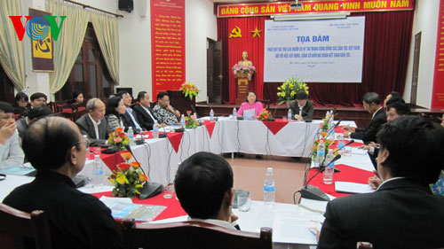 (VOV5) - Phát huy vai trò của người có uy tín được Đảng Cộng sản VN, chính quyền, Mặt trận Tổ quốc các cấp xác định là nội dung quan trọng, có ý nghĩa chính trị to lớn góp phần xây dựng hệ thống chính trị cơ sở vững mạnh, đặc biệt tăng cường khối đại đoàn kết dân tộc. Tại cuộc tọa đàm “Phát huy vai trò của người có uy tín trong cộng đồng các dân tộc Việt Nam đối với việc xây dựng, củng cố khối đại đoàn kết toàn dân tộc” diễn ra sáng nay, 19/11, tại Làng Văn hóa – Du lịch các dân tộc Việt Nam, Hà Nội, các đại biểu khẳng định thực tế trong nhiều năm qua, vai trò của người có uy tín ngày càng được khẳng định trong công cuộc xây dựng đất nước, xây dựng Đảng và chính quyền, phát triển kinh tế, văn hóa, quốc phòng, an ninh... Bà Hà Thị Liên, Phó Chủ tịch Ủy ban Trung ương Mặt trận Tổ quốc Việt Nam, cho biết: “Người có uy tín là những người có vai trò quan trọng tích cực để kết nối các tầng lớp nhân dân các dân tộc chung sức chung lòng xây dựng bảo vệ Tổ quốc. Nhiều tấm gương sáng của người có uy tín trong cộng đồng của các thành phần dân tộc ở mọi lứa tuổi luôn gương mẫu đi đầu trong các phong trào, hoạt động ở cơ sở, là hạt nhân tích cực để vận động nhân dân xây dựng cuộc sống mới, định canh, định cư, xóa đói giảm nghèo, phát huy bản sắc văn hóa dân tộc, tham gia sản xuất, xây dựng thôn, buôn, bản, làng vững mạnh về chính trị, kinh tế, văn hóa, xã hội”.