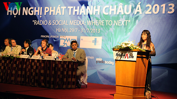 Trước đó, sáng nay, Hội nghị phát thanh châu Á 2013 cũng tiến hành hai phiên thảo luận về việc làm thế nào để có thể xây dựng một chương trình hấp dẫn trên sóng phát thanh và đóng góp của phát thanh cho công nghệ thông tin và truyền thông trong giai đoạn hiện nay, xây dựng một chương trình hấp dẫn nhất trên sóng phát thanh, trong đó có nghệ thuật kể chuyện và hình ảnh trên sóng phát thanh. Bà Đặng Thị Huệ, Phó Giám đốc Hệ phát thanh Dân tộc của Đài tiếng nói Việt Nam cho biết: “Riêng về âm nhạc dân gian chúng tôi có 35 chương trình do Hệ âm nhạc thông tin giải trí do hệ VOV 3 sản xuất. Về nghệ thuật sân khấu cổ truyền, chúng tôi cũng có nhiều chương trình do hệ VOV2 sản xuất. Còn các lĩnh vực khác thì hầu khắp các hệ trong đài sản xuất. Đó là chưa kể đến 12 chương trình tiếng dân tộc thiểu số giới thiệu văn hoá của 54 dân tộc Việt Nam mang tình chất giải trí thông tin khoa giáo. Điều quan trọng là 54 dân tộc Việt Nam đều tham gia vào chương trình này. Chúng tôi tạo điều kiện để họ tự kể về dân tộc mình”.