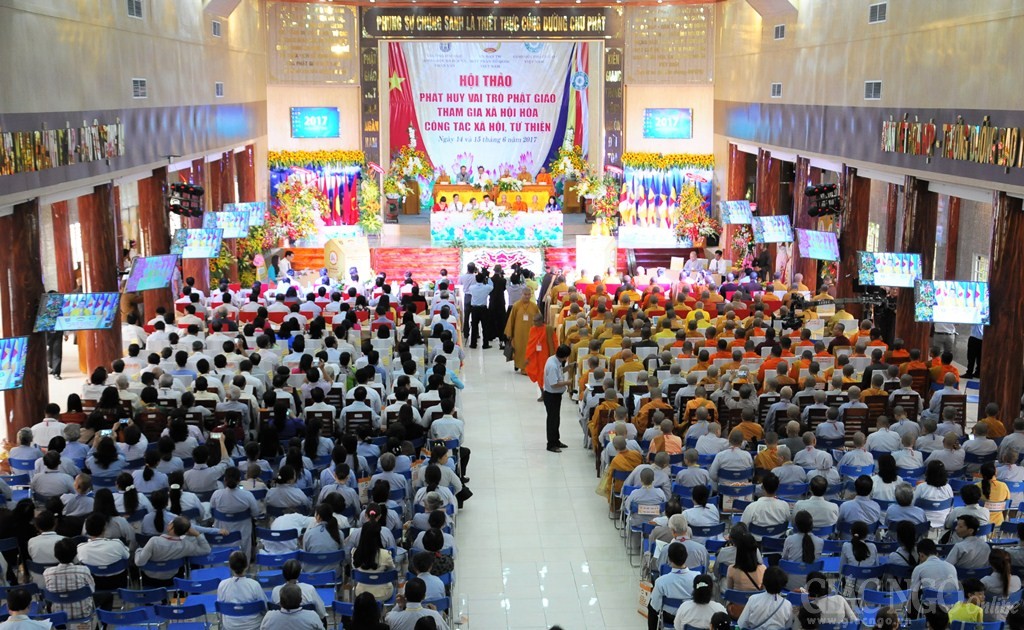 Tại hội thảo, các ý kiến tham luận của các đại biểu khẳng định tinh thần nhập thế hành đạo của Phật giáo Việt Nam được thể hiện thường xuyên qua các hoạt động xã hội hóa công tác xã hội và từ thiện. Hoạt động từ thiện xã hội của Phật giáo không chỉ là sự thể hiện lòng từ bi, hỷ xả, nhân ái, chia sẻ nỗi đau với người bất hạnh, thiếu may mắn trong cuộc sống mà còn góp phần cùng với Đảng, Nhà nước và Mặt trận Tổ quốc Việt Nam các cấp thực hiện tốt an sinh, công bằng xã hội. Các đại biểu cũng tập trung thảo luận về các nội dung: xã hội hóa công tác xã hội, từ thiện của Phật giáo; vai trò, thực trạng của xã hội hóa công tác xã hội và từ thiện của Phật giáo; các hoạt động từ thiện, an sinh xã hội của Giáo hội Phật giáo Việt Nam tại các địa phương, góp phần phát huy vai trò của Phật giáo tham gia xã hội hóa công tác xã hội.