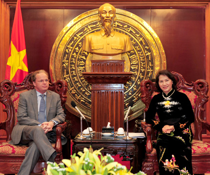 Tại buổi tiếp, Phó Chủ tịch Quốc hội Nguyễn Thị Kim Ngân cho biết Việt Nam đã bước qua ngưỡng thu nhập trung bình từ năm 2010 và đã đạt được một số thành tựu bước đầu để chuyển sang kinh tế thị trường. Việt Nam đang tập trung khâu đột phá là hoàn thiện thể chế kinh tế thị trường định hướng xã hội chủ nghĩa, phát triển nhanh nguồn nhân lực và xây dựng hệ thống kết cấu hạ tầng đồng bộ. Do vậy, Việt Nam rất cần có sự tiếp tục hỗ trợ của Ngân hàng thế giới và các nhà tài trợ về nguồn vốn và tư vấn chính sách.