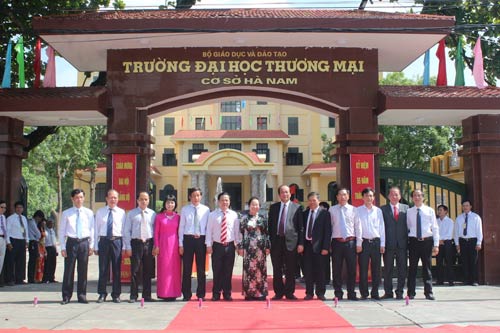 | Phó Chủ tịch nước Nguyễn Thị Doan cùng các đại biểu tại Lễ gắn biển Trường Đại học Thương mại cơ sở Hà Nam (Ảnh: cand.com.vn) |