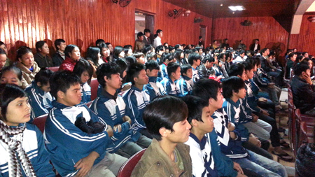 | Các em học sinh có hoàn cảnh khó khăn của 4 tỉnh Bắc Trung Bộ nhận học bổng "Em không phải bỏ học". (Ảnh:dantri) |