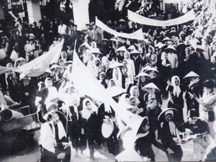 | Đội quân tóc dài (huyện Mỏ Cày) tham gia đấu tranh trong phong trào Đồng Khởi năm 1960. (Ảnh TL) |