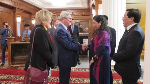 | Đại biểu Quốc hội Việt Nam chào xã giao Chủ tịch Hội đồng Liên bang Nga Valentina Matvienko. |