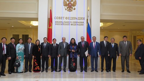 | Đoàn Quốc hội Việt Nam chụp ảnh lưu niệm với nhóm các nghị sĩ hợp tác với Quốc hội Việt Nam tại trụ sở Hội đồng liên bang Nga |
