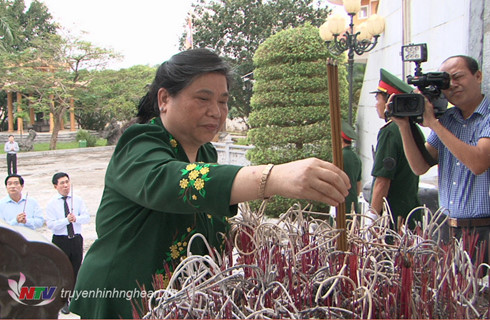 | Phó Chủ tịch Quốc hội Tòng Thị Phóng cùng đoàn công tác dâng hương tại Đài tưởng niệm các Anh hùng Liệt sỹ. |