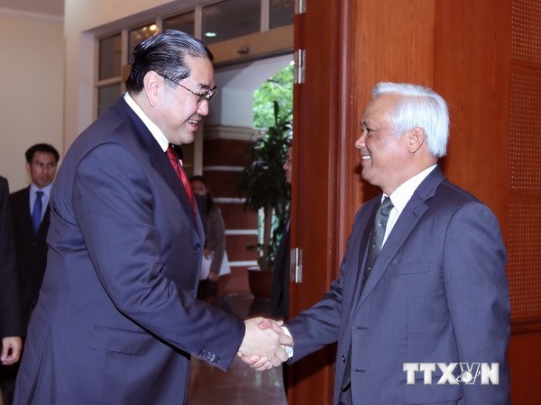 | Phó Chủ tịch Quốc hội Uông Chu Lưu tiếp Chủ tịch Hội đồng Hòa bình và Hòa giải châu Á Surakiart Sathirathai. (Ảnh: An Đăng/TTXVN) |