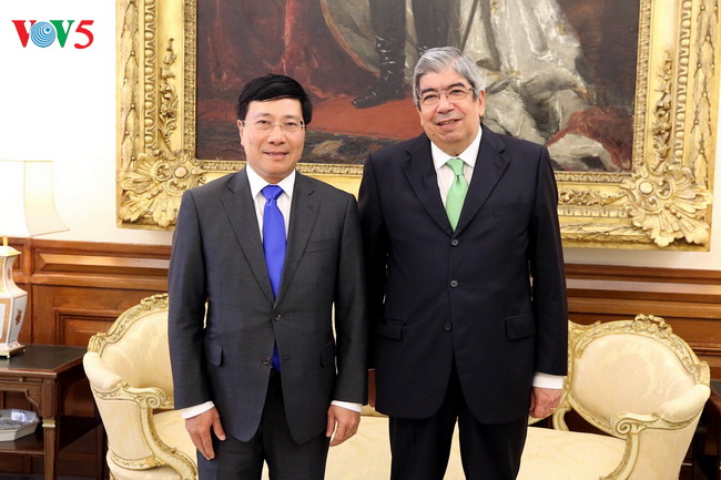 Phó Thủ tướng, Bộ trưởng Ngoại giao Phạm Bình Minh (bên trái) và Chủ tịch Quốc hội Bồ Đào Nha (VOV) |