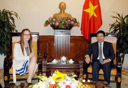 | Phó Thủ tướng, Bộ trưởng Ngoại giao Phạm Bình Minh tiếp Chủ tịch Ủy ban Đối ngoại Thượng viện Mexico G. C. Barron. Ảnh: VGP/Hải Minh |
