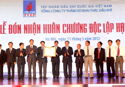 (VOV5)- Tại Lễ kỷ niệm 5 năm Ngày thành lập Tổng Công ty Thăm dò và Khai thác Dầu khí (PVEP) tối 11/5 tại Hà Nội, Phó Thủ tướng Chính phủ Hoàng Trung Hải thay mặt lãnh đạo Đảng và Nhà nước trao Huân chương Độc lập hạng ba tặng Tổng Công ty vì những đóng góp quan trọng trong việc đảm bảo an ninh năng lượng của đất nước, góp phần điều tiết kinh tế vĩ mô của Chính phủ và bảo vệ chủ quyền biển đảo của Việt Nam.