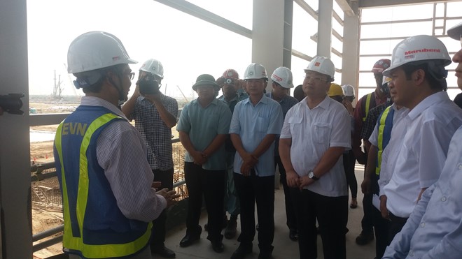 | Phó Thủ tướng Hoàng Trung Hải đang nghe Chủ đầu tư EVN báo cáo về tiến độ thi công của Nhà máy Nhiệt điên Thái Bình 1. Ảnh laodong.com.vn |
