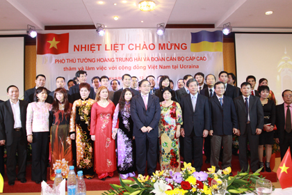 | Phó Thủ tướng Hoàng Trung Hải chụp ảnh cùng cộng đồng người Việt tại Ucraina |