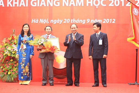 Phó Thủ tướng Nguyễn Xuân Phúc đã trao Huân chương Độc lập hạng Nhất cho trường Đại học Ngoại thương và đánh trống khai giảng năm học mới 2012-2013./.