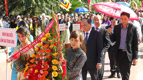 Phó Thủ tướng Nguyễn Xuân Phúc cùng các đại biểu Trung ương và địa phương tới Điện thờ “Tây Sơn Tam Kiệt” dâng hương tại bàn thờ lớn và các bàn thờ Quang Trung - Nguyễn Huệ, Nguyễn Nhạc, Nguyễn Lữ và các văn thần, võ tướng trong Điện thờ.