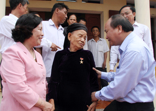Nhân dịp này, Phó Thủ tướng Nguyễn Xuân Phúc đến thăm hỏi, tặng quà gia đình thương binh hạng 1/4 Đỗ Văn Vụ và Mẹ Việt Nam Anh hùng Nguyễn Thị Kính (có chồng và con duy nhất là liệt sĩ).