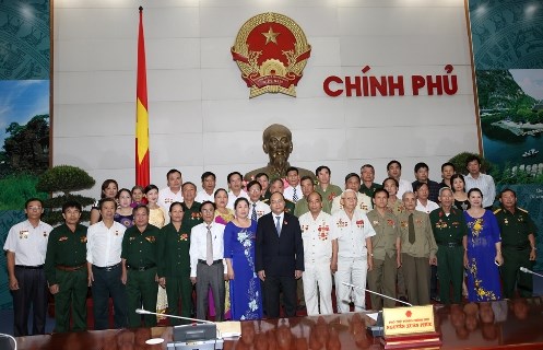 (VOV5) - Tại buổi tiếp Đoàn đại biểu người có công tỉnh Nghệ An chiều 11/6 tại Trụ sở Chính phủ, Phó Thủ tướng Chính phủ Nguyễn Xuân Phúc khẳng định Đảng, Nhà nước, nhân dân luôn biết ơn công lao đóng góp của các gia đình có công, đối tượng chính sách trong sự nghiệp xây dựng, bảo vệ Tổ quốc.