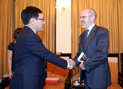 | Phó Thủ tướng Phạm Bình Minh tiếp ông Peter Tichansky, Chủ tịch Hội đồng Doanh nghiệp thúc đẩy quan hệ quốc tế của Hoa Kỳ. Ảnh: VGP |