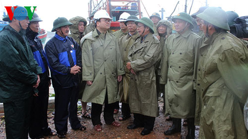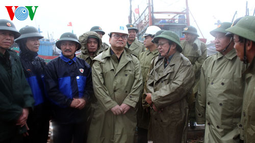 Tại đây, Phó Thủ tướng Hoàng Trung Hải đã liên tục lưu ý tỉnh tuyệt đối không để cho ngư dân ở lại trên tàu dù đang ở nơi neo đậu an toàn. Phó Thủ tướng nhấn mạnh, bão số 10 là cơn bão mạnh, diễn biến phức tạp, khó lường, khi đã đổ bộ vào đất liền, gây mưa lớn ở vùng núi, vì vậy các Bộ, ngành Trung ương và lực lượng vũ trang chủ động phối hợp tốt với các địa phương rà soát kỹ việc đảm bảo an toàn hồ chứa, điều tiết xả lũ; giúp nhân dân chằng chống nhà cửa, đảm bảo an toàn tuyệt đối khi bão đổ bộ.
