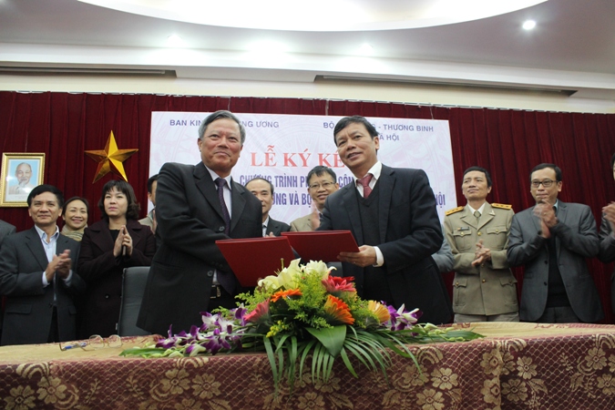 | Đại diện Bộ Lao động, Thương binh và Xã hội ký kết chương trình phối hợp với Ban Kinh tế Trung ương (Ảnh: CPV) |