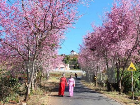 | Hoa anh Đào tại Đà Lạt. (Ảnh: Đặng Tuấn/TTXVN) |