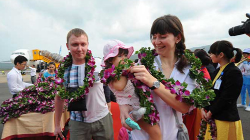 | Những du khách Nga đầu tiên đặt chân lên sân bay quốc tế Phú Quốc (Ảnh: Tuổi trẻ) |