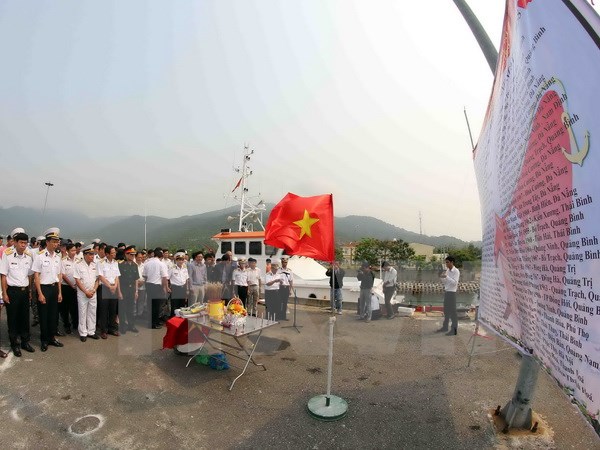 | Lễ tưởng niệm, tri ân 64 cán bộ, chiến sỹ đã anh dũng hy sinh trong trận hải chiến ngày 14/3/1988 để bảo vệ đảo Gạc Ma, thuộc quần đảo Trường Sa (Việt Nam) bị tàu hải quân Trung Quốc tấn công. (Ảnh: TTXVN) |