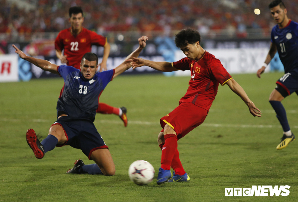 Hiệp đấu đầu tiên diễn ra với thế trận giằng co. Đội tuyển Việt Nam kiểm soát bóng ít hơn đối thủ một chút nhưng lại có nhiều cơ hội hơn. Trong khi đó lối chơi nặng tính thể lực của Philippines chưa đủ gây ra nguy hiểm đáng kể cho đội tuyển Việt Nam.