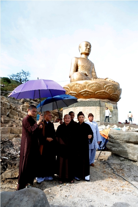 | Các nhà sư thăm công trình trên An Kỳ Sinh Yên Tử. tienphong.vn |