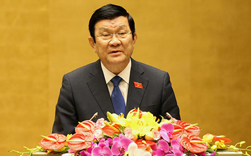 Thảo luận về báo cáo nhiệm kỳ của Chủ tịch nước, nhiều đại biểu Quốc hội đánh giá 5 năm qua, Chủ tịch nước có đóng góp quan trọng trong quá trình cải cách tư pháp, trong công tác đối ngoại cũng như có tiếng nói mạnh mẽ trong vấn đề an ninh, bảo vệ chủ quyền đất nước. Ông Nguyễn Anh Sơn, đại biểu Quốc hội tỉnh Nam Định, nêu ý kiến: "Trong lĩnh vực tư pháp, Chủ tịch nước đặc biệt quan tâm đến công tác xây dựng và thể chế hóa các quy định của pháp luật để xây dựng hệ thống tư pháp ngày càng hiện đại, hội nhập quốc tế trong thời kỳ mới, đặc biệt Chủ tịch nước rất quan tâm đến việc xây dựng đội ngũ cán bộ tư pháp có phẩm chất, năng lực, trình độ để đáp ứng yêu cầu thực tế. Thứ hai là cùng với hoạt động đối ngoại của Tổng bí thư, Chủ tịch Quốc hội và Thủ tướng Chính phủ, hoạt động đối ngoại của Chủ tịch nước đã góp phần quan trọng trong việc nâng cao vị thế của Việt Nam trên trường quốc tế, đúng như lời của Tổng thư ký Liên hợp quốc Ban Ki Moon phát biểu trước Quốc hội Việt Nam tuy là đất nước còn khó khăn nhưng là quốc gia có trách nhiệm với thế giới. Thứ ba, trong hoạt động thực tiễn, Chủ tịch nước luôn chăm lo đời sống của nhân dân, nhất là vùng sâu, vùng xa".