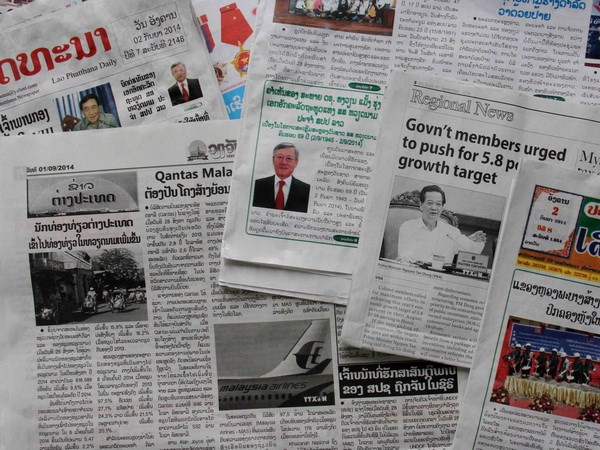 Báo Lào ra ngày 1 và 2/9/2014. (Ảnh: Hoàng Chương/Vietnam+)