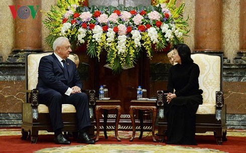 Quyền Chủ tịch nước Đặng Thị Ngọc Thịnh cho biết Việt Nam mong muốn hai bên tăng cường hợp tác kinh tế - thương mại, đặc biệt phối hợp chặt chẽ triển khai hiệu quả Hiệp định Thương mại tự do Việt Nam - Liên minh Kinh tế Á - Âu, phấn đấu đạt mục tiêu 500 triệu đô la Mỹ trong thời gian tới như Lãnh đạo hai nước đã thống nhất.
