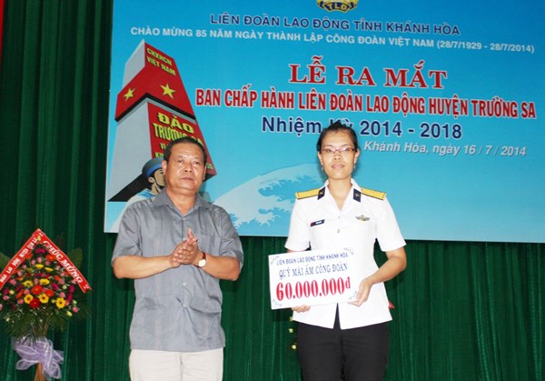 Phát biểu tại buổi lễ, Phó Chủ tịch Tổng Liên đoàn Lao động Việt Nam Trần Văn Lý, nhấn mạnh Liên đoàn Lao động huyện Trường Sa cần phối hợp chặt chẽ với chính quyền thực hiện các biện pháp giúp đỡ người lao động, xây dựng cơ chế, chính sách hỗ trợ tối đa cho ngư dân đánh bắt hải sản ở ngư trường Hoàng Sa và Trường Sa; đồng thời tích cực xây dựng huyện Trường Sa phát triển toàn diện về kinh tế- xã hội, an ninh- quốc phòng; chú trọng tập hợp đội ngũ cán bộ công chức, viên chức, người lao động đang công tác trên địa bàn vào tổ chức công đoàn.