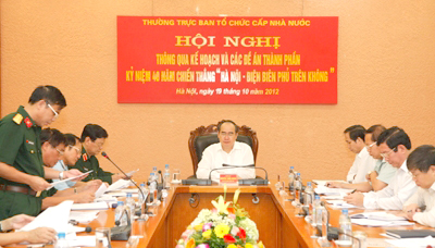 (VOV5) - Hôm nay 19/10, tại Hà Nội, Phó Thủ tướng Chính phủ Nguyễn Thiện Nhân, Trưởng Ban Tổ chức cấp Nhà nước Lễ kỷ niệm 40 năm chiến thắng “Hà Nội – Điện Biên Phủ trên không” (1972- 2012) chủ trì hội nghị rà soát, thông qua các kế hoạch và các đề án thành phần phục vụ buổi lễ.