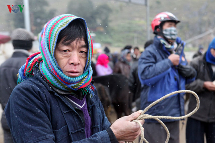| Người đàn ông co ro trong phiên chợ bò Mèo Vạc, Hà Giang |