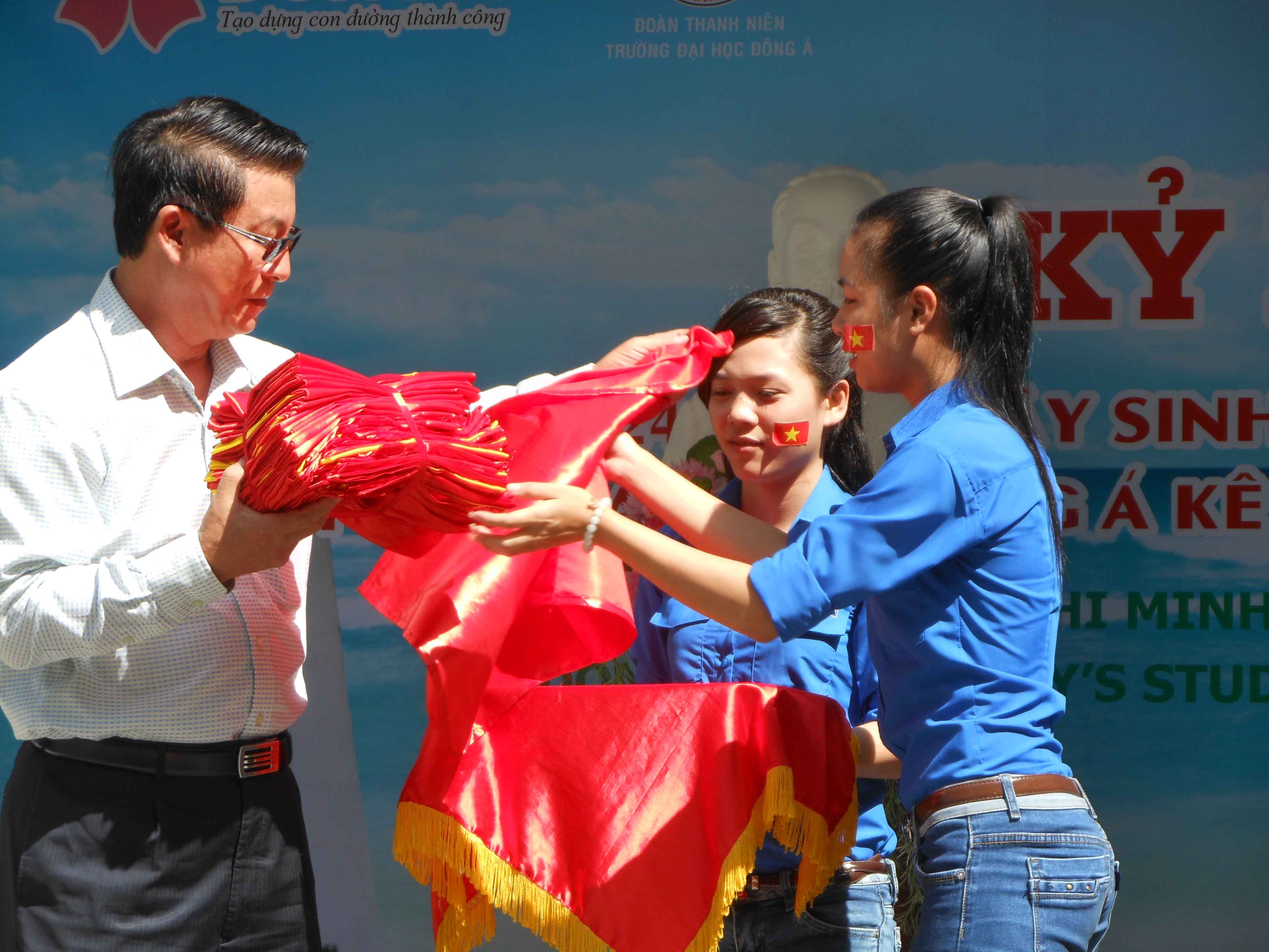 | Sinh viên đại học Đông Á trao cờ Tổ quốc cho Hội nghề cá Đà Nẵng. Ảnh minh họa: phunuonline. |