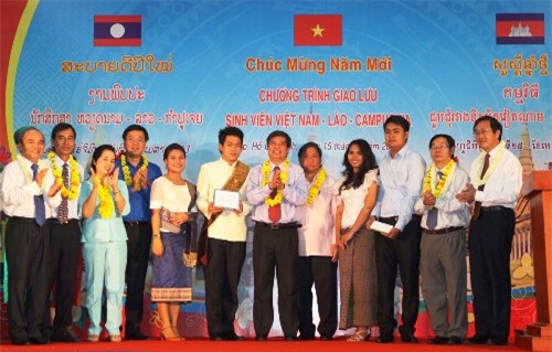 (VOV5) - Chiều 15/4, Thành Đoàn Thành phố Hồ Chí Minh tổ chức chương trình đón tết cổ truyền Bunpimay, Chol Chnam Thmay cho sinh viên Lào và Campuchia hiện đang theo học tại thành phố. Đông đảo sinh viên và người dân thành phố đã hòa cùng niềm vui tết cổ truyền Bunpimay, Chol Chnam Thmay với hơn 150 sinh viên của hai nước Lào và Campuchia. Tại lễ hội, sinh viên 2 nước Lào - Campuchia đã thực hiện phần nghi lễ truyền thống như: Tắm Phật, chúc phúc, buộc chỉ cổ tay, té nước... để đưa tiễn năm cũ và đón chào năm mới 2013 với nhiều may mắn, hạnh phúc.