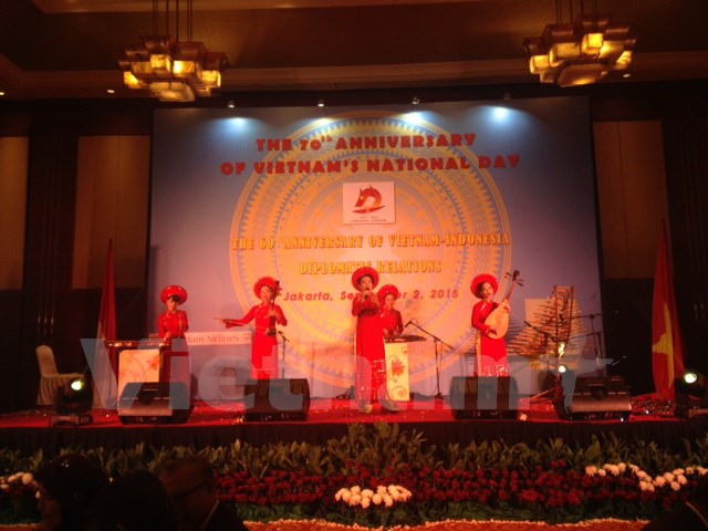 | Biểu diễn văn nghệ trong Lễ kỷ niệm 70 năm Quốc khánh 2/9 tại Indonesia. (Ảnh: Vietnam+) |