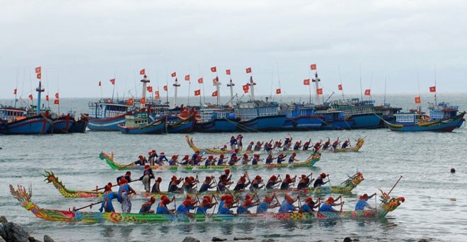 | Lễ hội đua thuyền của cư dân Quảng Ngãi gắn với truyền thống bảo vệ chủ quyền biển đảo. Ảnh: laodong |