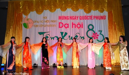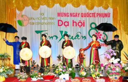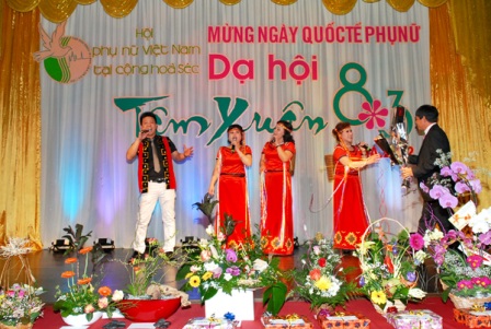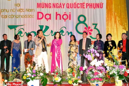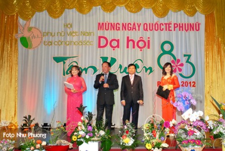 (VOV5) - Trong không khí vui tươi, phấn khởi và tràn ngập sắc xuân trên nhuw những tà áo dài truyền thống đủ màu, thướt tha, duyên dáng của các bà, các mẹ, các chị từ khắp các vùng miền ở Cộng hòa Czech tụ hội tại Hội trường nhà hàng Đông Đô, TTTM Sapa Praha trong đêm Dạ hội của Hội phụ nữ Việt Nam.