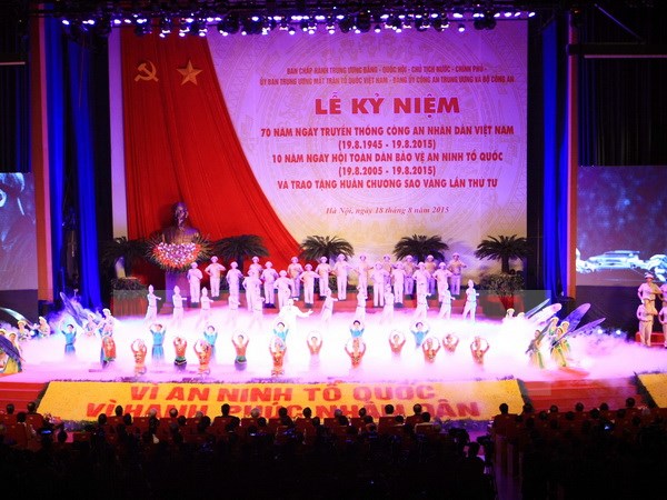 | Lễ kỷ niệm 70 năm Ngày truyền thống Công an nhân dân, 10 năm Ngày hội toàn dân bảo vệ an ninh Tổ quốc tại Hà Nội. (Ảnh: Doãn Tấn/TTXVN) |