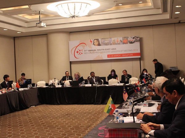 | Đoàn Việt Nam tham dự Hội nghị các nhà lãnh đạo Chữ thập đỏ, Trăng lưỡi liềm đỏ Đông Nam Á lần thứ 11 tại Singapore. (Ảnh: Kim Yến/Vietnam+) |