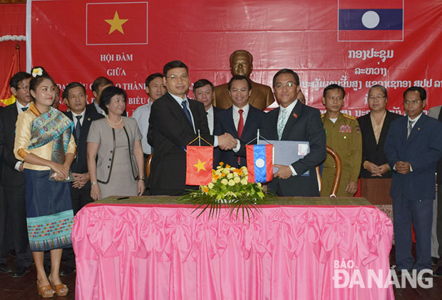 | Lãnh đạo thành phố Đà Nẵng và tỉnh Sekong trao biên bản ghi nhớ chương trình hợp tác giai đoạn 2018-2022 (Ảnh: baodanang.vn) |