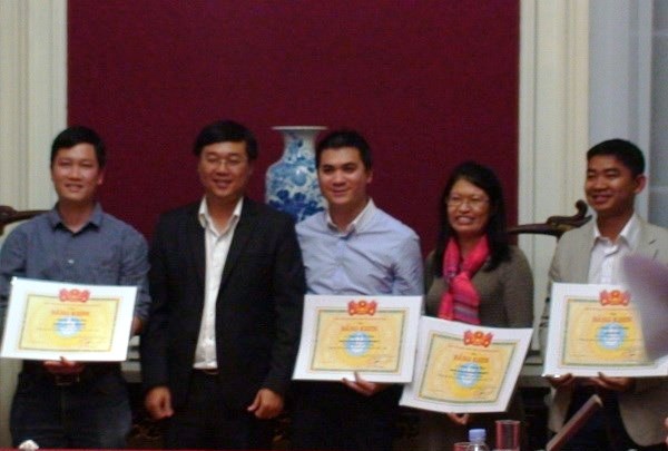| Trao tặng giấy khen cho các thành viên xuất sắc của Hội sinh viên Việt Nam tại Bỉ. (Ảnh: Hương Giang/Vietnam+) |